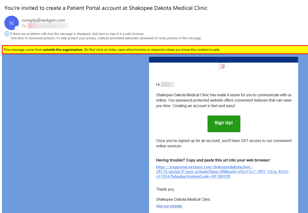 You will receive a response in 1-7 business days. During that time, keep an eye out for an email from noreply@nextgen.com containing a registration link. Once received, click the sign up button in the email and follow the steps to complete your registration.